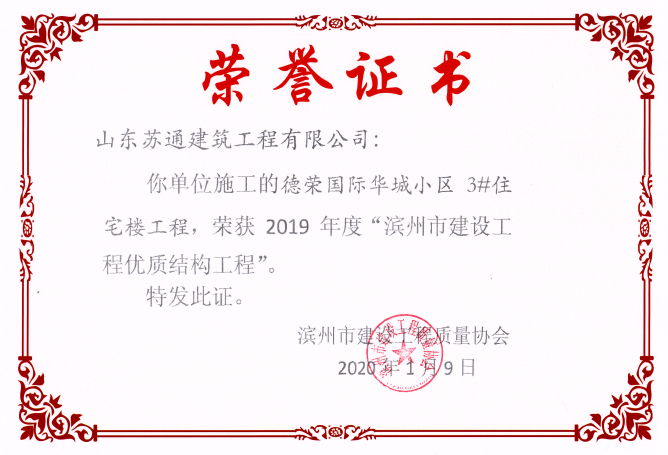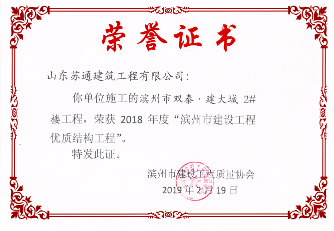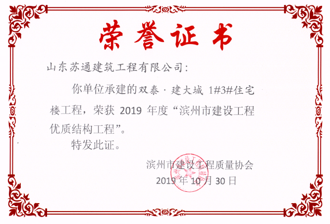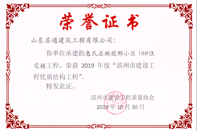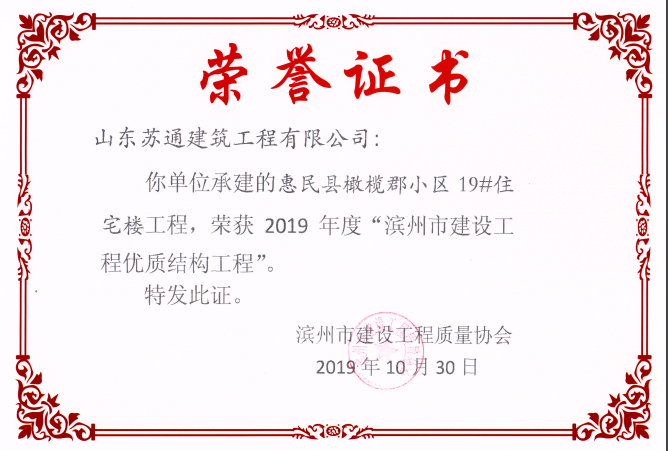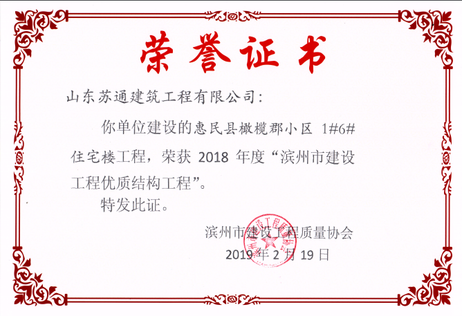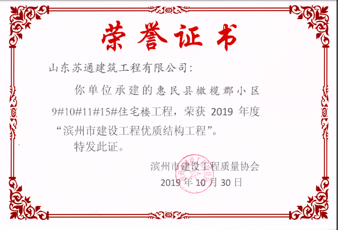 山東蘇通建筑工程有限公司,創(chuàng)建于2009年8月。目前擁有房屋建筑工程施工總承包壹級、市政公用工程施工總承包叁級、水利水電工程施工總承包叁級資質,同時還具有建筑裝修裝飾工程專業(yè)承包貳級、消防設施工程專業(yè)承包貳級、鋼結構工程專業(yè)承包叁級、建筑機電安裝工程專業(yè)承包叁級等專業(yè)承包資質。 公司總部坐落于山東省濱州市濱城區(qū)黃河十二路877號,現有辦公面積約2000平方米,機構設黨支部工會辦公室、總經理辦公室、綜合辦公室、工程管理部、經營預算部、資產財務部、材料設備部、運行管理部、法律事務部等多個職能部門。公司管理體系已經通過了GB/T 19001及GB/T 50430質量管理體系、GB/T 24001環(huán)境管理體系(EMS)、GB/T 28001職業(yè)健康安全管理體系(OHSMS)等體系的認證。 公司承建完工了濱州市建大教師之家、建大清怡苑、香格里拉水岸綠城住宅小區(qū)、雙泰建大城、曲阜崇德公館住宅小區(qū)、北海新區(qū)御景藍灣住宅小區(qū)、沾化德榮國際華城住宅小區(qū)、惠民橄欖郡住宅小區(qū)等工程項目,目前在建工程項目有:濱州市頤高國際電子商務產業(yè)園住宅小區(qū)項目、濱州市東盛國際項目、高新區(qū)建大中央華府住宅小區(qū)項目、濱州市融匯新里程住宅小區(qū)項目、濱州市建大秦皇壹號住宅小區(qū)項目、濱州市森林花...